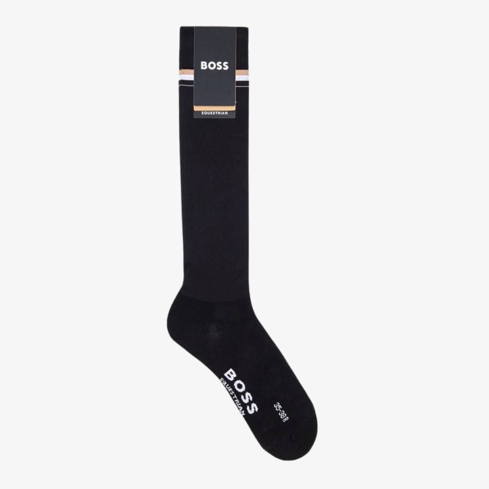 Le calze equestre premium si distinguono per la caratteristica banda Signature Stripe e il logo BOSS laterale, elementi distintivi che conferiscono eleganza e riconoscibilità.