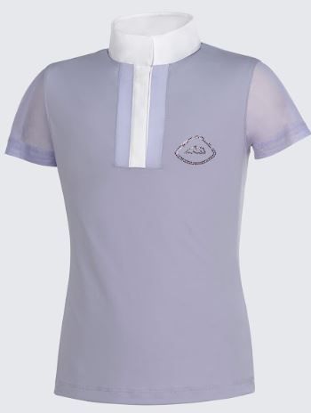 Pensata per le giovani amazzoni che amano l'eleganza, questa polo è caratterizzata da un tessuto elasticizzato e traspirante con dettagli in tulle tono su tono sull'apertura anteriore e sulle maniche. I bottoni a pressione nascosti mantengono il look pulito, mentre il logo con strass sul petto aggiunge un tocco di lucentezza. La tecnologia di asciugatura rapida garantisce il comfort dal riscaldamento al raffreddamento.