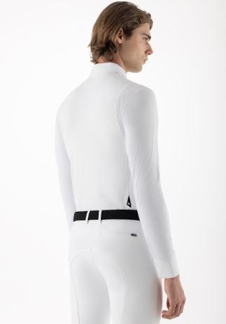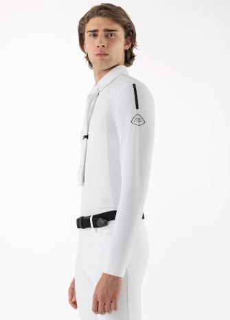 Combinando elasticità e comfort con un'avanzata tecnologia di raffreddamento, questa camicia da competizione a maniche lunghe presenta pannelli traspiranti e strutturati sui fianchi e sulle maniche per un flusso d'aria ottimale. La mezza zip e i bottoni magnetici sul colletto button-down assicurano una vestibilità raffinata, completata da una cravatta nera e dal logo nero stampato sulla manica. Grazie alla protezione solare UPF 30+ e al tessuto ad asciugatura rapida, è progettata per mantenervi freschi e concentrati in sella.