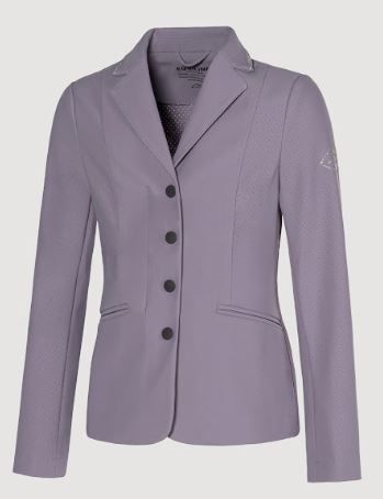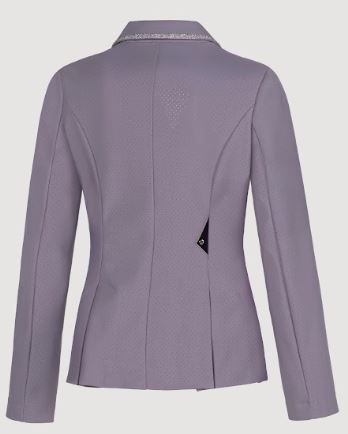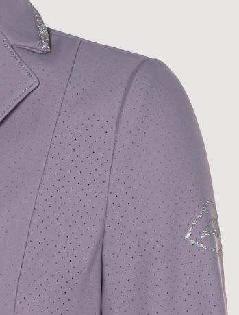 Elegante e funzionale, questa giacca da competizione sfoderata è realizzata in tessuto traspirante con microfori per il massimo comfort e flusso d'aria. Compatibile con l'airbag e ad asciugatura rapida, presenta una decorazione in crystal fabric tono su tono sul colletto e sulle tasche per un sottile scintillio. Un logo stampato con glitter sulla spalla completa il look raffinato, perfetto per i giovani cavalieri sul ring.