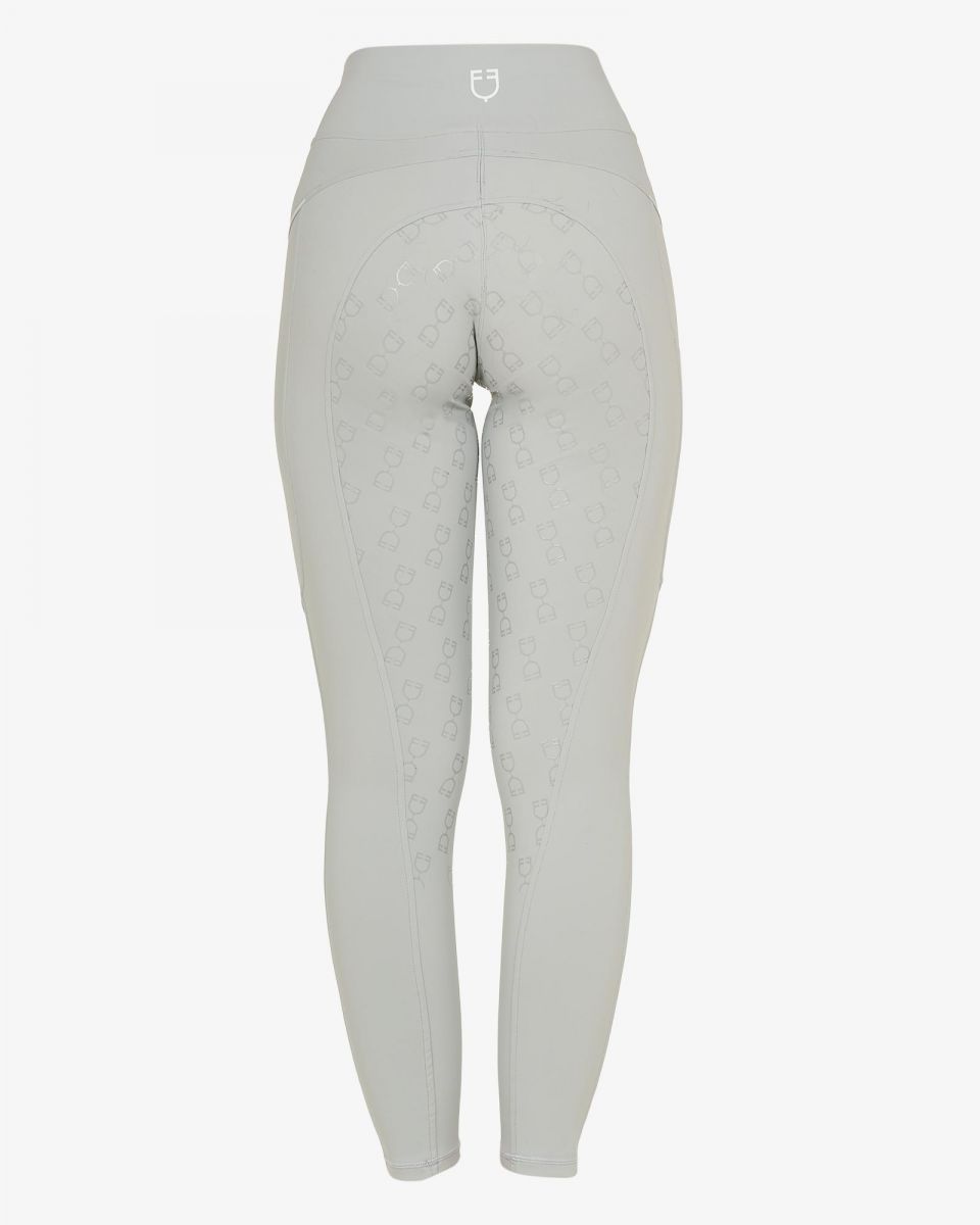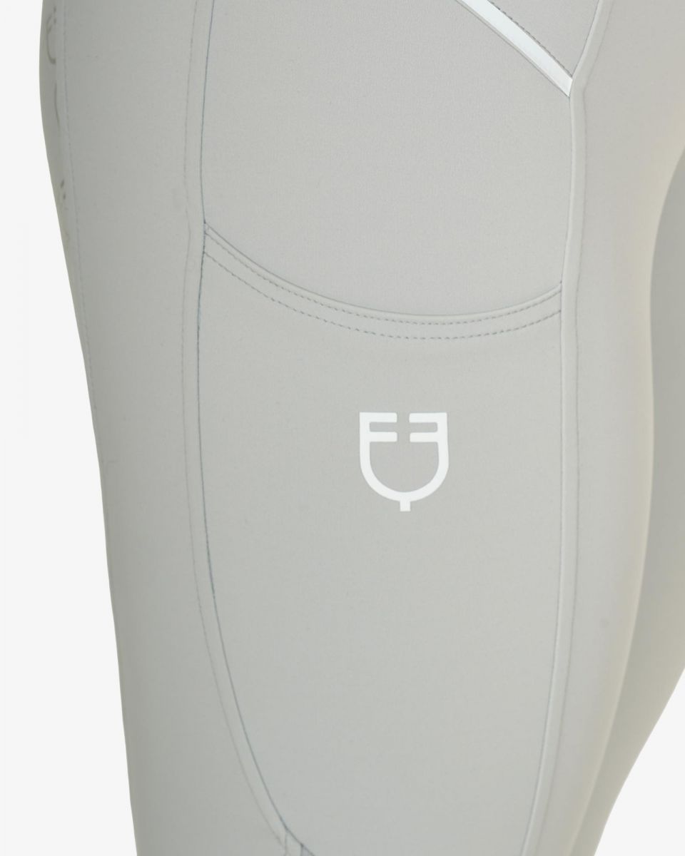 Leggings donna slim fit con grip completo in tessuto tecnico micro mesh super elasticizzato e traspirante. Il capo è in parte ricoperto dal grip logato in silicone, che è presente in particolare nella parte posteriore e all'interno del ginocchio così da facilitare l'assetto in sella e aumentare la stabilità. Lateralmente è posta una pratica e ampia tasca decorata con bordature e logo Equestro in giallo. Sono in oltre presenti degli inserti in tessuto microtraforato per un ulteriore traspirabilità donando oltretutto un design all'avanguardia. Si adattano perfettamente ad ogni fisicità e la presenza dell'ampio elastico in vita permette di fasciare completamente il girovita e garantire una vestibilià perfetta e confortevole.