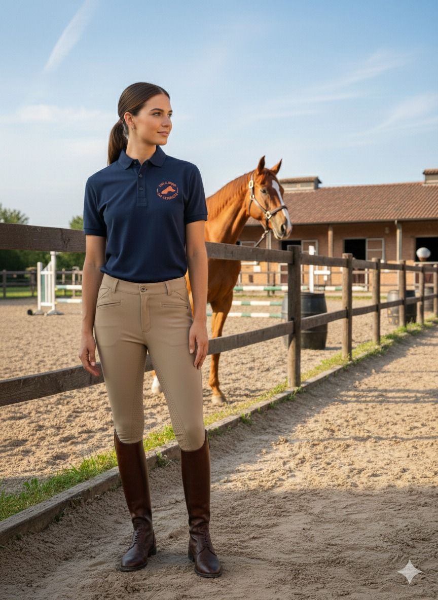 Stile, comfort e performance si incontrano in questa polo da donna in piqué elasticizzato e traspirante. I dettagli tono su tono su colletto e polsini donano un´eleganza sobria, mentre il logo ricamato su manica e petto completa un look versatile, perfetto per l´abbigliamento casual e per le giornate a cavallo.