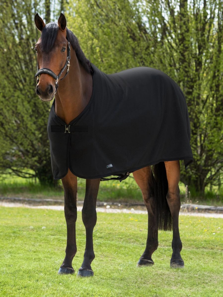 Coperta in pile con ganci sottopancia staccabili da ambedue i lati. Speciale trattamento anti-peeling. Possibilità di personalizzare con bordi e corde.