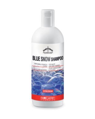 Shampoo con eccezionali proprietà pulenti specificamente studiato per i mantelli grigi e bianchi. I crini dei cavalli tendono a ingiallire al contatto con la lettiera. Blue Snow ridona al mantello il colore naturale. Elimina definitivamente macchie causate da lettiera e sporcizia.